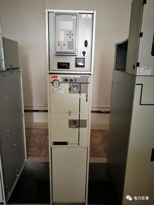 下圖顯示了一個典型的10kV開關,型號為ABB,開關位于機柜中間。