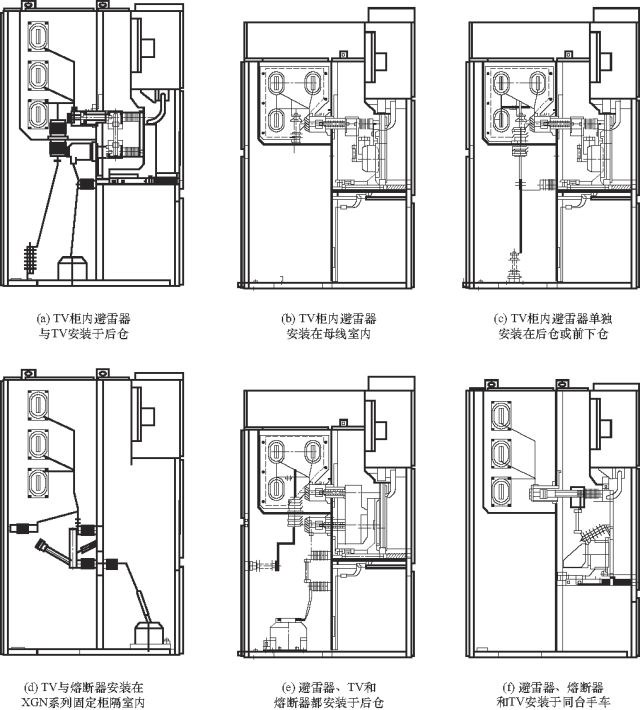3.對于連接方式3,將避雷器從原隔間中取出,將避雷器移至手車中,并重新安裝到熔斷器和避雷器手車中,堵住原母線隔間的壁孔,添加手車的下觸頭盒安裝板、觸頭盒擋板和閥門機構(gòu),將電視機安裝在后隔間中,并通過導(dǎo)線連接到下觸頭。該方案可以在原有的手推車上實施,也可以考慮新的手推車。