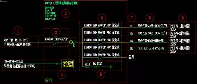 首先部分:這部分是配電箱的輸入線,表示電源的來源。